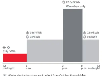 During the Flex Pricing Pilot, participants’ electricity costs will vary depending on the time of day. Electricity is more expensive to produce during peak times and sometimes requires the use of inefficient and higher-pollution “peaker” power plants. The Flex Pricing rate is designed to reward customers for using less expensive off-peak power and to save money across the utility system.